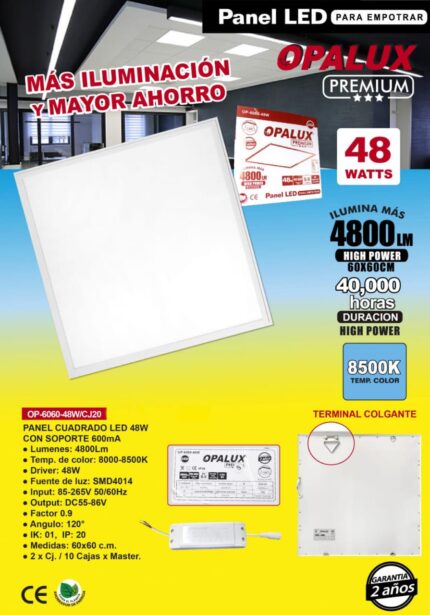 Panel Led 12W Luz blanca 7000K “Opalux” 1080 Lumens
