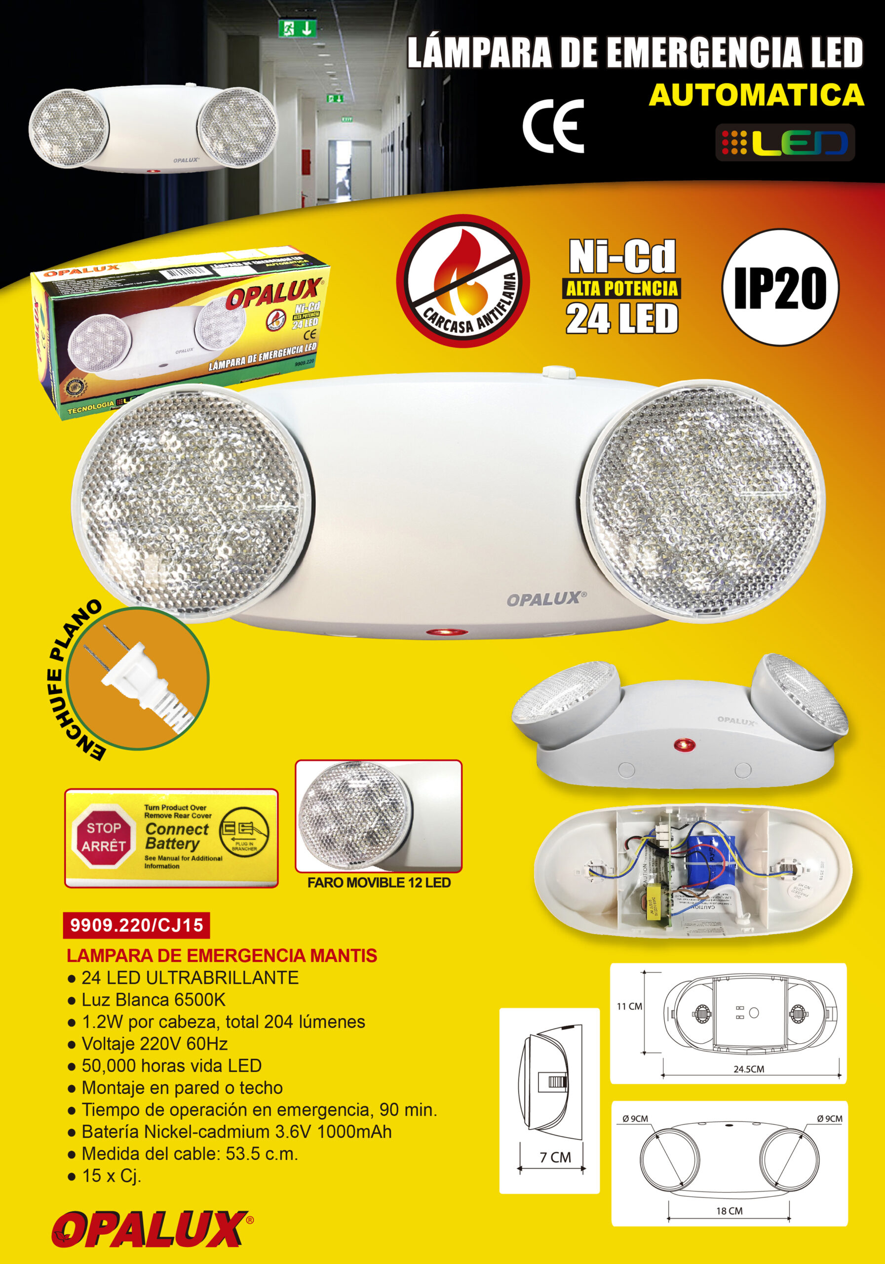 Luz de Emergencia 24 LED modelo MANTIS 90Min INDECI “Opalux” Original Nuevo 9909